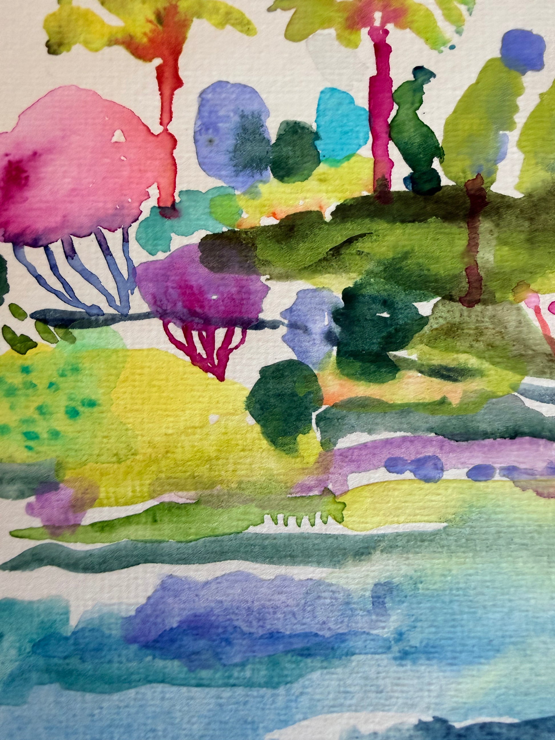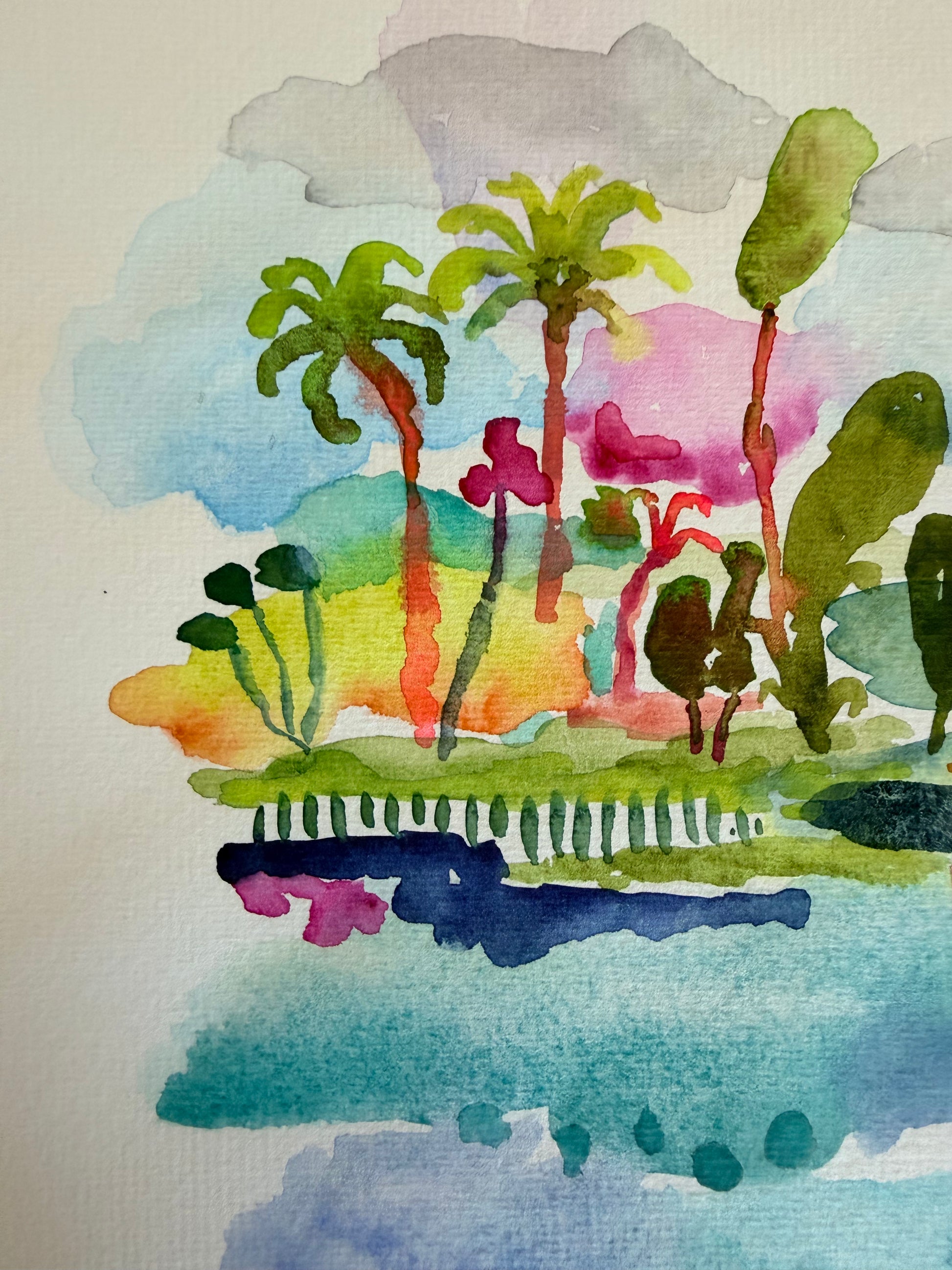 Alligator Waters are two (2) serene original abstract landscape paintings That were painted whilst on a boat looking back at the shore. A few alligators are hiding on in the shore line. Executed on archival-quality soft Italian Amatruda 110lb paper.
